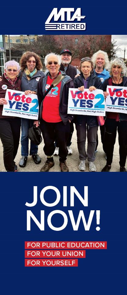 Your membership in MTA Retired and NEA Retired gives you the ability to keep abreast of educational, political and legislative issues and to be directly involved in the shaping of education.